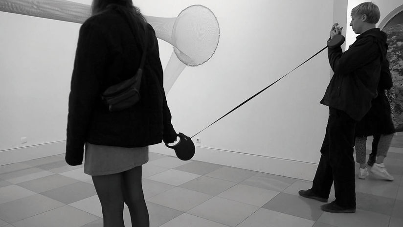 Susi und Strolch, 2018, Hunderollleine, »KI_L_MUC_SA_R«, Galerie der Künstler*innen München